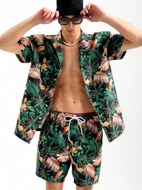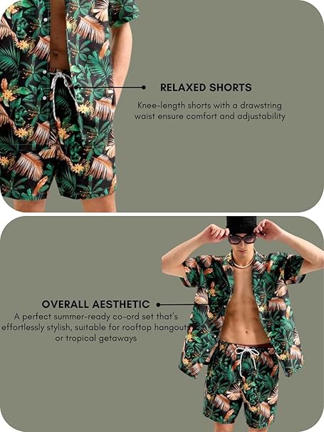 Step into vacation mode with the IGNIIX Tropical Print Resort Co-ord Set, designed for men who want to stand out with effortless style. This matching shirt and shorts set delivers a bold and refreshing summer vibe with its eye-catching tropical pattern.